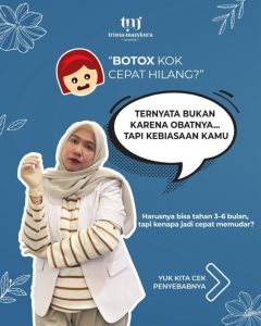 Artinya, Botox yang seharusnya bertahan hingga 6 bulan bisa jadi hanya bertahan 2–3 bulan saja.