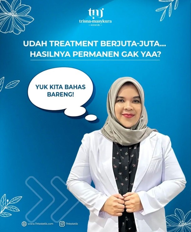 Banyak orang datang ke klinik kecantikan dengan satu pertanyaan besar: “Dok, kalau sudah treatment berjuta-juta, kok hasilnya nggak permanen ?” Pertanyaan ini wajar sekali, karena setiap orang tentu ingin investasi perawatan yang dilakukan tidak sia-sia.
